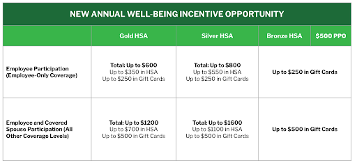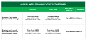 If you’re in the Gold or Silver HSA, a portion of your incentive will transition to immediate gift card rewards. Bronze, BCBS AL, and $500 PPO members will have the opportunity to solely earn gift card rewards.*